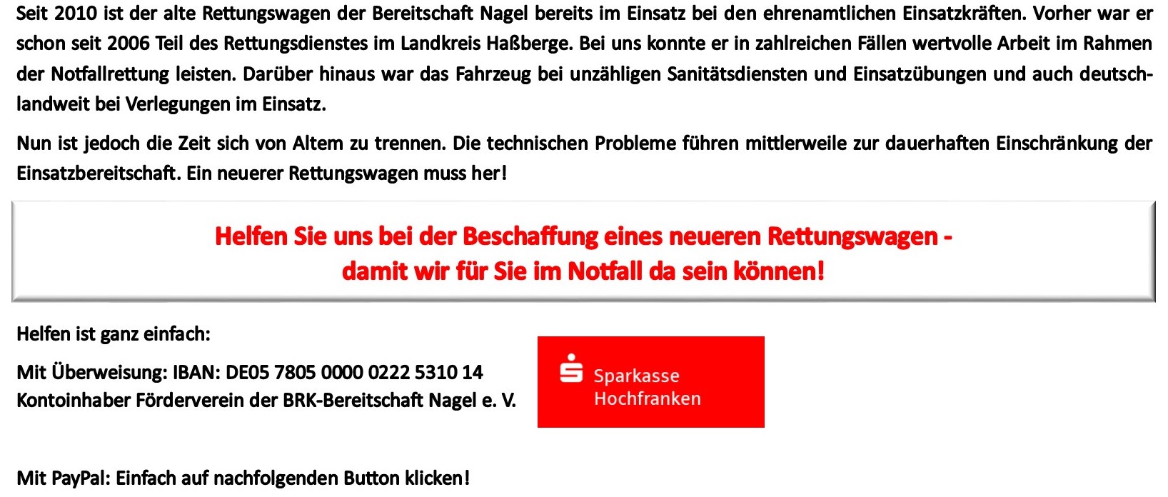 An unser Bankkonto spenden